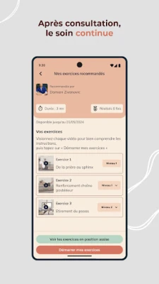Si besoin, vous pourrez consulter les praticiens de notre réseau Andrew proche de chez vous grâce a notre map intégrée. Et Après votre consultation, le suivi continue sur Andrew, où vous retrouverez les conseils d'exercices recommandés par votre thérapeute à effectuer pour maximiser les effets de la consultation.