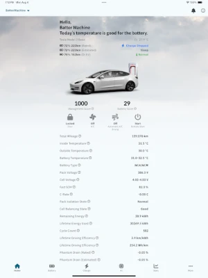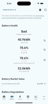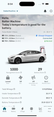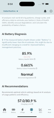 • Visualizes personalized battery health trend charts influenced by real driving and charging behaviors.