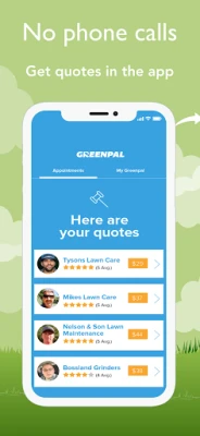 Get next day lawn service from the app without having to call around leaving voicemails for quotes. Get quotes, select the provider, read reviews, schedule lawn mowing, and give feedback.