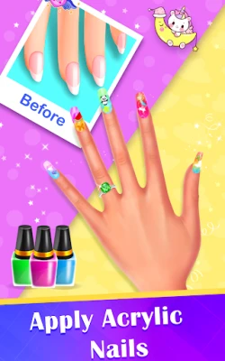 Nails Salon Games is the ultimate 💅🏻 Nail Art Salon Makeover Game for Girls! Unleash your creativity and become a skilled nail artist with precision and style. Apply nail polish layers, add intricate details using various nail art tools like gems, stickers, and stencils, and finish with a glossy topcoat to complete the look!