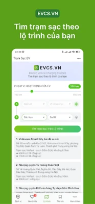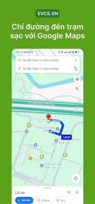 Điểm mạnh của Trạm Sạc EV chính là khả năng hỗ trợ lập lộ trình thông minh. Khi lên kế hoạch cho một chuyến đi xa, ứng dụng sẽ gợi ý các trạm sạc phù hợp dọc theo tuyến đường, giúp bạn tính toán chính xác thời điểm và địa điểm sạc tiếp theo. Dữ liệu lộ trình này được tối ưu nhờ sự liên kết với hệ thống EVCS.VN, đảm bảo bạn luôn sạc đúng lúc, đúng nơi, tránh gián đoạn hành trình. Với một thao tác chạm, bạn có thể điều hướng trực tiếp đến trạm thông qua Google Maps hoặc các ứng dụng bản đồ quen thuộc khác, đảm bảo tiện lợi và chính xác tối đa.