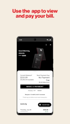 The Verizon Visa Card App requires a compatible device and an active Verizon Visa Card account.