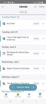 You also have the ability to set and see your upcoming reminders such as: time to sharpen your mower blades, take a progress picture or just about anything you can dream of.